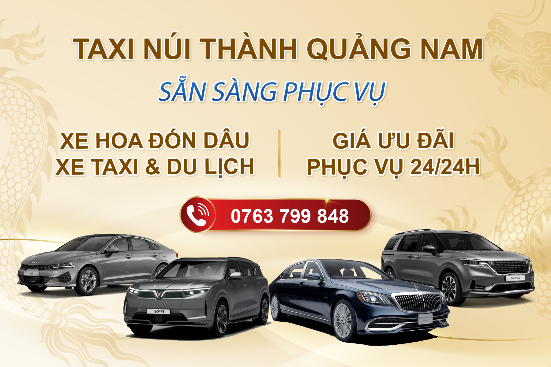 Dịch vụ taxi với hệ thống đặt xe trực tuyến giá rẻ nhất thị trường, đưa đón sân bay toàn cuốc, taxi giá rẻ, thuê xe đi du lịch, thuê xe đi công tác, thuê xe về quê có tài xế, các loại xe văn phòng ( xe không tem mào) đời mới, phong cách lịch sự, sẵn sàng phục vụ đưa đón quý khách mọi lúc mọi nơi. Hệ thống tổng đài hiện đại với phần mềm quản lý tiên tiến phủ toàn cuốc. Chúng tôi tự hào là một thương hiệu xe taxi giúp bạn di chuyển nhanh chóng và tiện lợi nhất